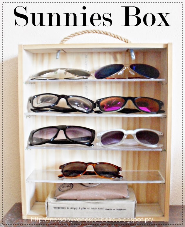 Boa Sexta-feira minha gente! Espero que estejam a planear um bom fim de semana. Bem, e aqui está o meu recente DIY. Uma caixa de vinho que serviu para por os meus óculos de sol. É só preciso de acrílico e uns parafusos para fazer as divisões. E voilà! Espero que tenham gostado do resultado final.Bom fim de semana!